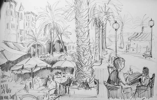 Te todas formas me motivé. Irreplaceable de Beyonce y dry martini mientras me preparaba. Traje suelto estampado de colores con fondo blanco roto, Lolita Lempicka, rojo en los labios, pestañas infinitas y pelo ondulado suelto. Mis tacones en cuña de esparto y caminar firme hasta el restaurante.